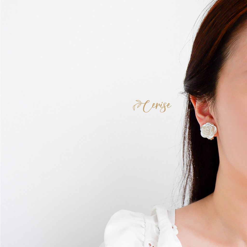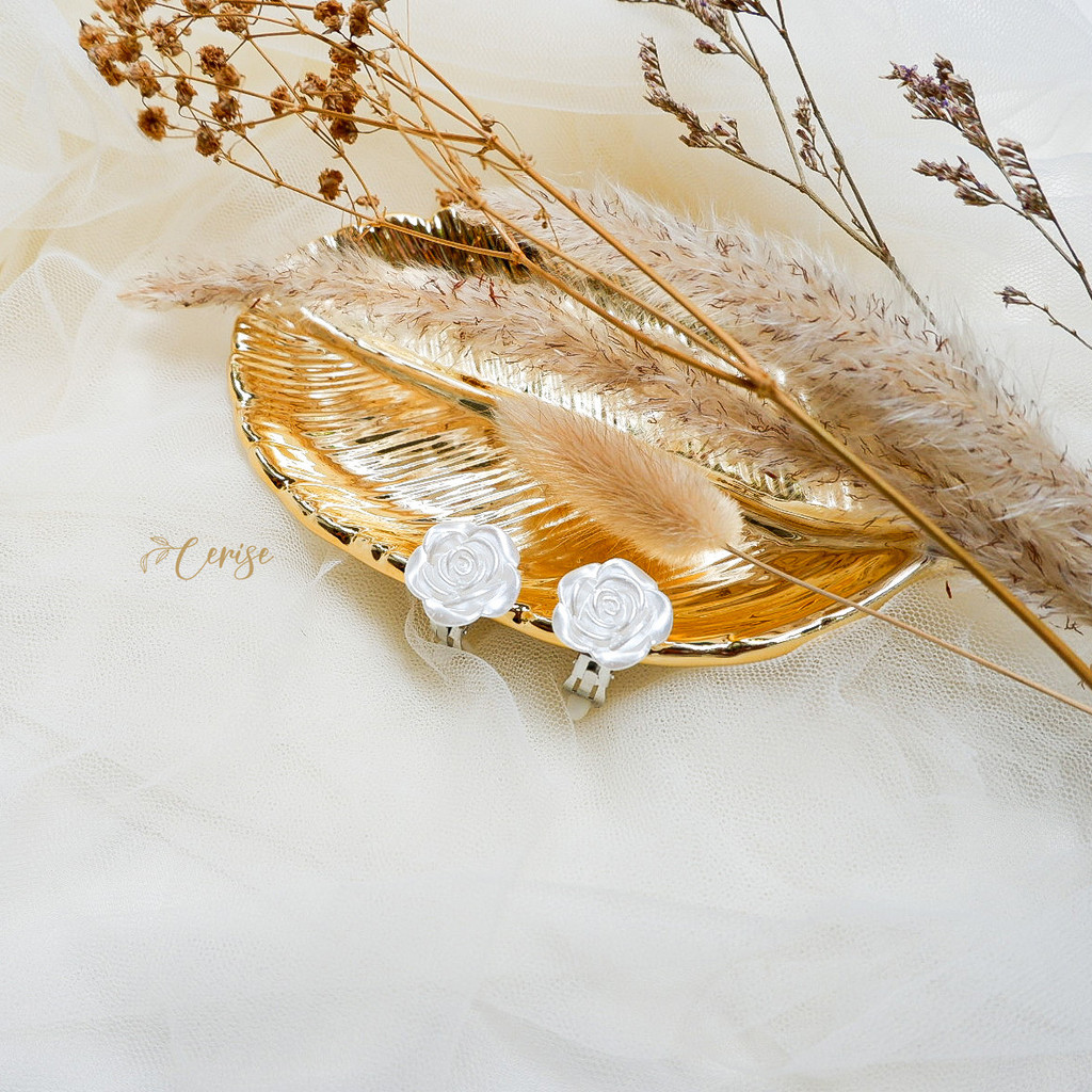 Detail Roseline Earrings | Anting jepit tanpa tindik bunga mawar putih korea aksesoris wanita cantik