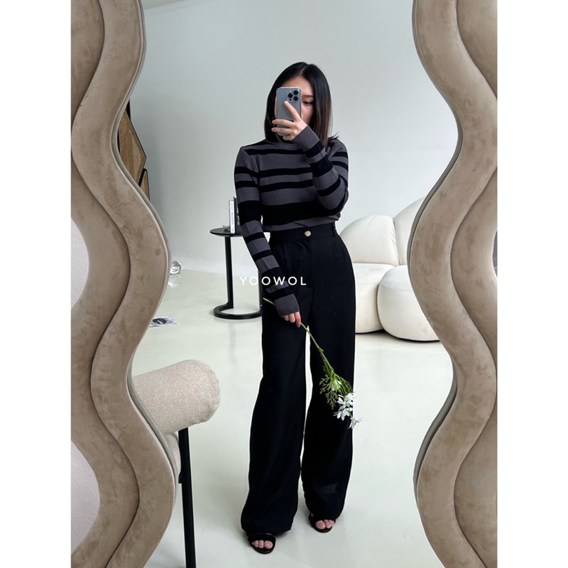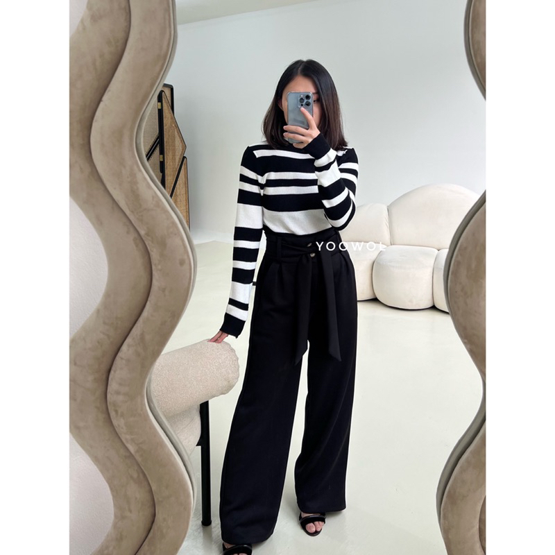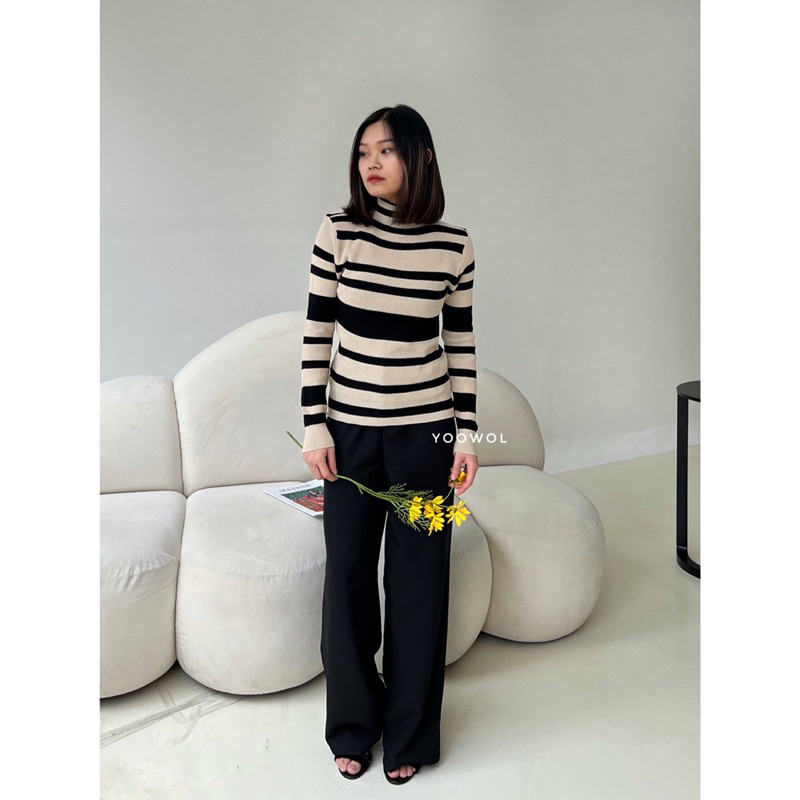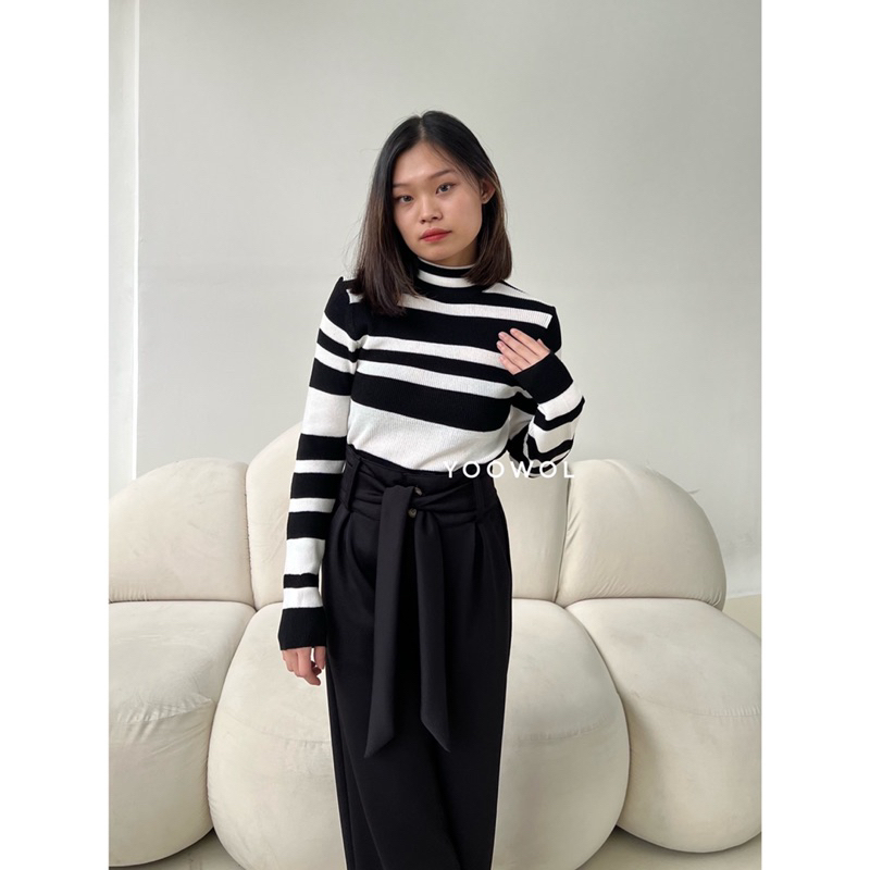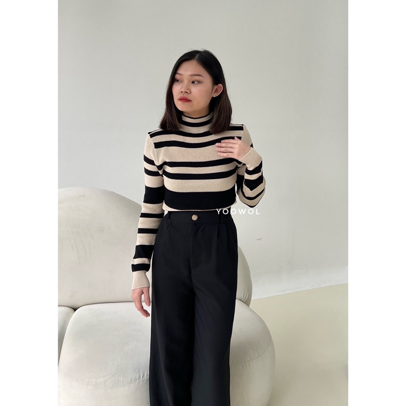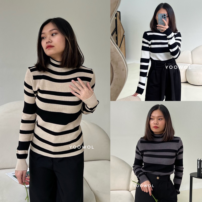 Rosie Knit Top/Atasan Garis Garis Wanita Lengan Panjang/Atasan Wanita Lengan Panjang Korea/Atasan Knit/Basic Knit Top