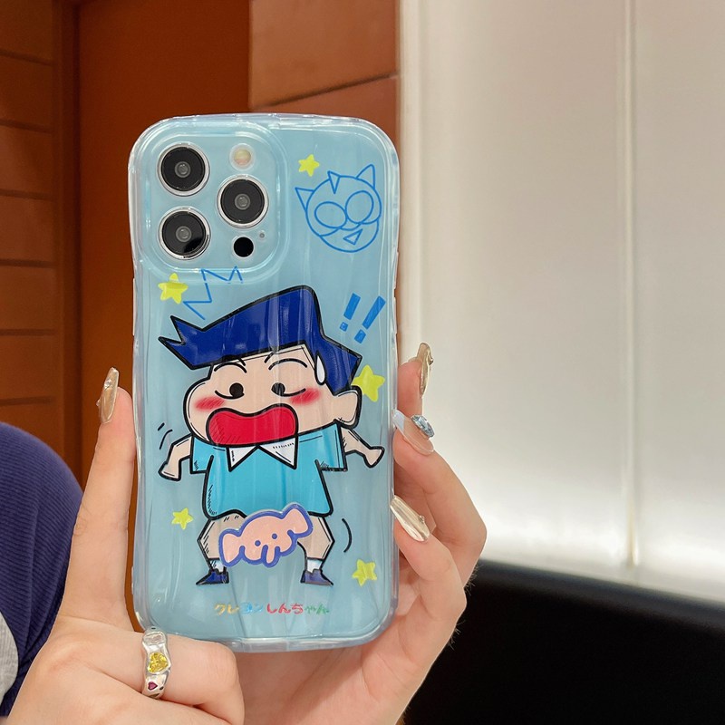 Handphone & Aksesoris > Casing & Skin > Casing & Skin Handphone > 【Rotatable Toy】 Couple Crystal Wave So Cute Funny Crayon Shin-chan Airbag Soft Case for IPhone X XR XS Max 11 12 13 14 Pro Max 14 Plus Women Girl Lovely Elephant Cartoon