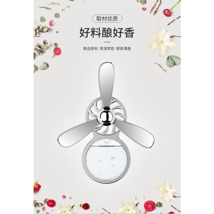 Deskripsi, Fungsi dan Kegunaan : - Parfum mobil dengan model kipas yang dapat berputar yang dicolok di kisi-kisi AC, selain sebagai parfum juga sebagai hiasan mobil. - Model elegan dan mewah dengan aroma parfum yang soft dan tidak menyengat. - Kipas dapat berputar jika terkena hembusan angin yang keluar dari kisi AC sehingga aroma parfum juga akan menyebar keluar. - Dengan botol kaca jika parfumnya habis dapat diisi ulang sesuai aroma kesukaan.