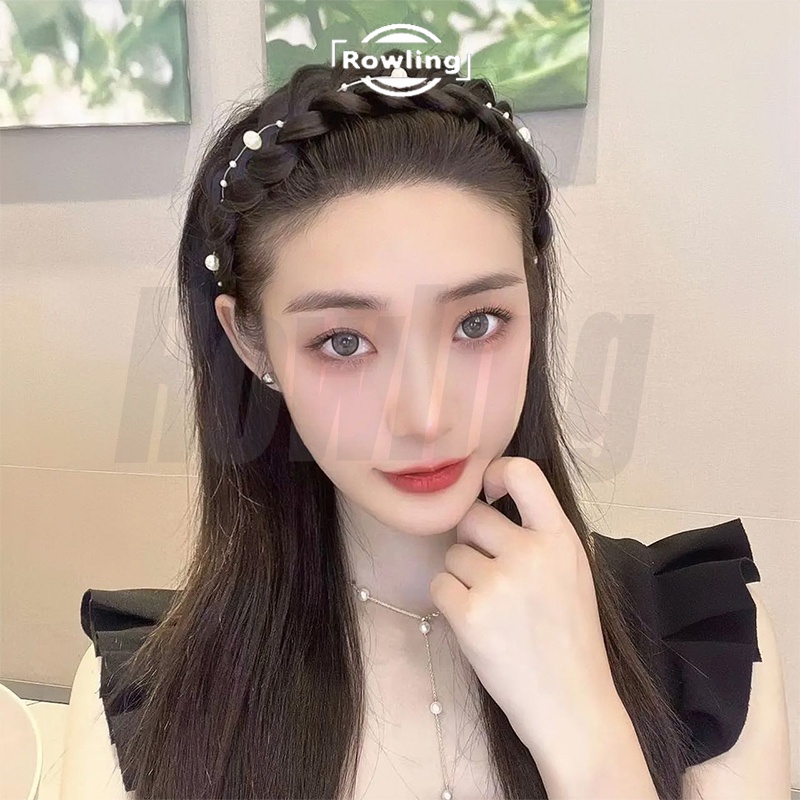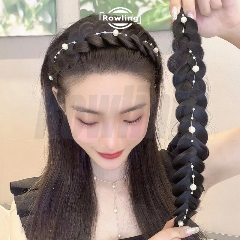 Detail ROWLING (B - 15) Bando Bandana Rambut Kepang Mutiara - Headband - Bando Bandana Rambut Import