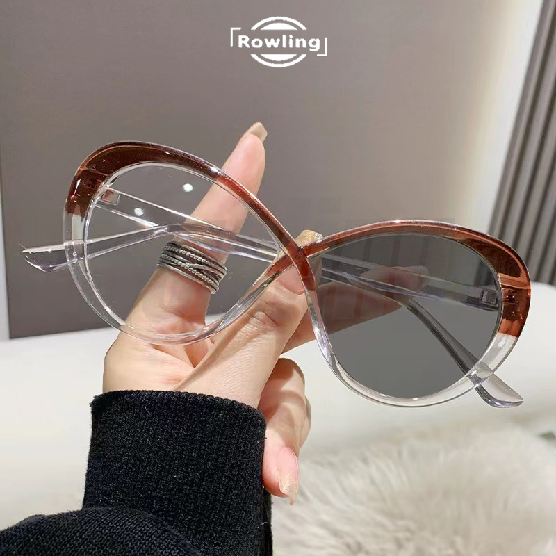Aksesoris Fashion > Kacamata & Aksesoris > Frame & Lensa Kacamata > Rowling (Pc-344 dan KA-345) 2 In 1 Kacamata lensa photocromic anti radiasi & non photocromic wanita pria kacamata bingkai Titanium Cat Eye Anti UV fotocromic