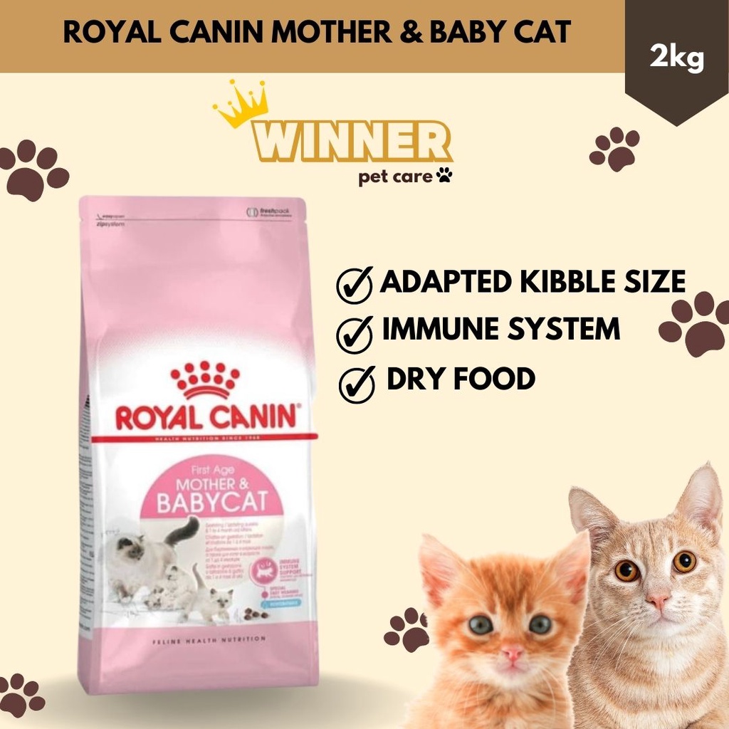 Royal Canin Mother Baby Cat Food dikhususkan untuk induk kucing selama masa hamil dan menyusui dan anak usia 1 sampai 4 bulan.