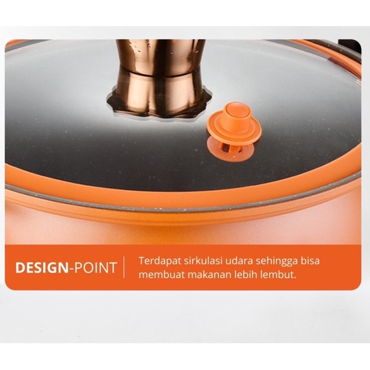 KEUNGGULAN PRODUK : - Kapasitas besar sehingga dapat menampung satu ekor ayam - Praktis, simple, ergonomis dan hemat tempat - Lapisan anti lengket sehingga praktis dan mudah membersihkan minyak - Micro Pressure tekanan 2~3KPA sehingga proses memasak tidak memakan waktu panjang - Penutup transparan dan pengunci rapat sehingga penutup tidak copot atau kendor saat memasak - Fleksible dapat digunakan di berbagai jenis kompor elektrik maupun kompor gas - Gagangan karet anti panas sehingga memudahkan anda saat mengangkat panci - Katup Pelepas tekanan dan penutup dilengkapi dengan karet rapat - Tidak mengandung bahan kimia, nyaman untuk digunakan oleh manusia