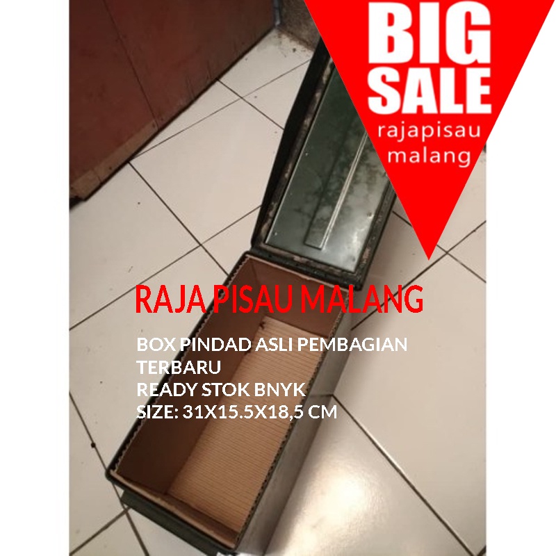 Box Peluru Bekas Original Pindad 100% 1. Berbahan Plat Besi 2. Berat 3.000gram 3. Warna Hijau Tua 4. Ukuran P31xL15,5xT18,5 5. Di lengkapi Seal dan Engsel untuk meminimalisir Air dan Udara masuk 6. Kondisi 90-95% karena bukan barang baru 7. Barang Utuh dan di Pastikan Tidak Bolong atau Berkarat 8. Model Random tergantung stock