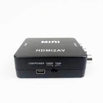 Fitur HDMI ke AV Video konverter ini adalah alat untuk mengubah input HDMI menjadi RCA AV. Adaptor ini menggunakan USB sebagai sumber dayanya sehingga tidak memerlukan colokan listrik.