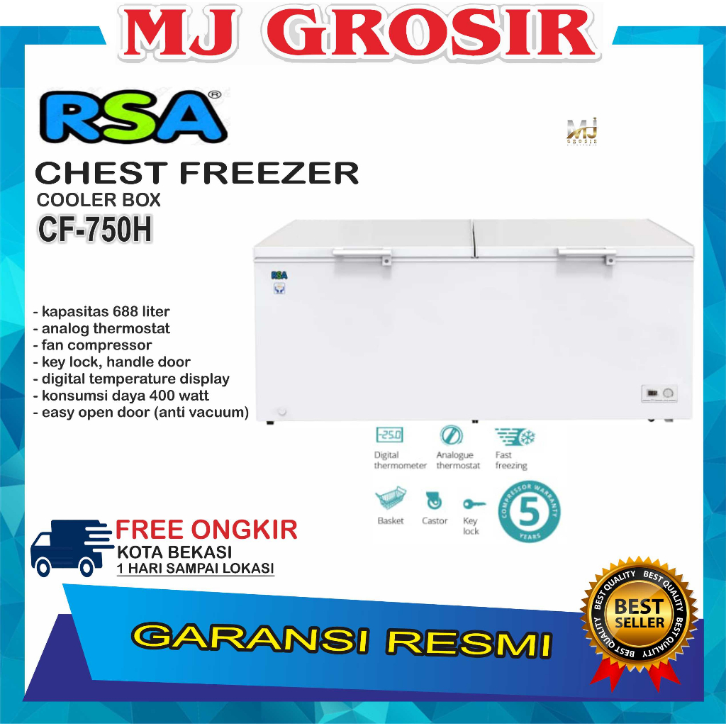 DESKRIPSI : RSA heast freezer digunakan untuk keperluan mini market, restoran hotel hingga supermarket besar untuk menyimpan aneka makan beku seperti ES crim, daging beku, seafood, baskso, nugget, DLL RSA CF-750 H / CF-740merupakan tipe dengan pintu dibuka keatas ( lift up ) Note : Kurang bisa bekuin air jadi es batu. Untuk membuat es batu sebaiknya menggunakan STAND FREESER