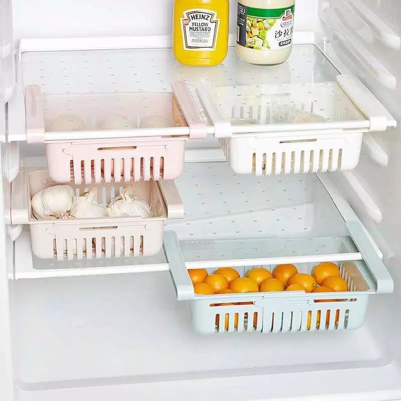 Isi kulkas berantakan atau ruang kulkas tidak cukup untuk menampung isi yang lebih banyak, Ibu-Ibu rumah tangga pasti sering mengalami hal ini. Pengen punya kulkas besar tapi mahal dan boros tempat. Gak perlu bingung, multifunction sliding rack siap membantu anda mengatasi hal ini. Multifunction sliding rack adalah rak multifungsi model sliding. Pasangnya dengan dijepit, bisa dijepit ke bagian pembatas kulkas. Jepitannya kuat, tidak mudah lepas.