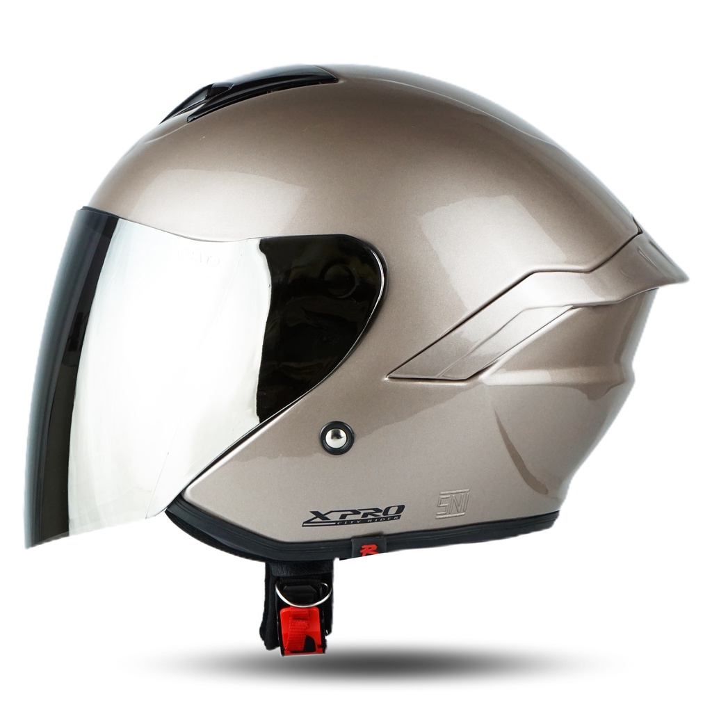 Rsix Xpro Series Sertifikasi : SNI Material : ABS ( Acrylonitrile Butadiene Styrene ) Berat Helm :1.4 KG Material visor : Polycarbonate Injeksi dan dilapisi anti gores. Chinstrap : QUICK RELEASE SYSTEM untuk memastikan kesesuaian yang nyaman dan dapat disesuaikan