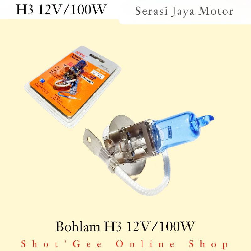 Otomotif > Suku Cadang Mobil > Lampu Mobil > RTC BOHLAM H3 12V 100W / BOHLAM DEPAN H3 12V-100W