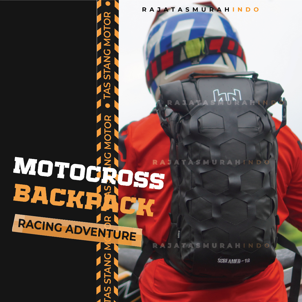 SPESIFIKASI PRODUK : ‣ Diperuntukan untuk pengendara motor Street Bike ataupun Eunduro ‣ Memiliki dua ruang penyimpanan plus penyimpanan kecil dalam untuk menyimpan barang elektronik sehingga tidak lembab dari hujan insentitas tinggi ‣ Memiliki jaring hexagonal untuk penyimpanan sarung tangan ataupun jas hujan ‣ Terdapat slot untuk waterblader max 3 liter ‣ Material backpack terbuat dari Bimo cordura dijamin anti air di segala kondisi ‣ Rubber zipper dan pengunci tas terbuat dari Buckel Acetal dengan kualitas tinggi ‣ Kapasitas tas 18 liter ‣ Terdapat 3 kompartemen dan 2 pocket ‣ Tas sudah double mesh di bagian belakang sehinggga nyaman saat dipakai ‣ Bagian dalam berlapis satin ‣ Adjustable strap di bagian bahu dan pinggang ‣ Menggunakan teknologi bartex untuk menahan beban bawaan ‣ Desain unik, sangat keren untuk penggunaan sehari hari dan menemani anda TRABASAN DI AKHIR PEKAN