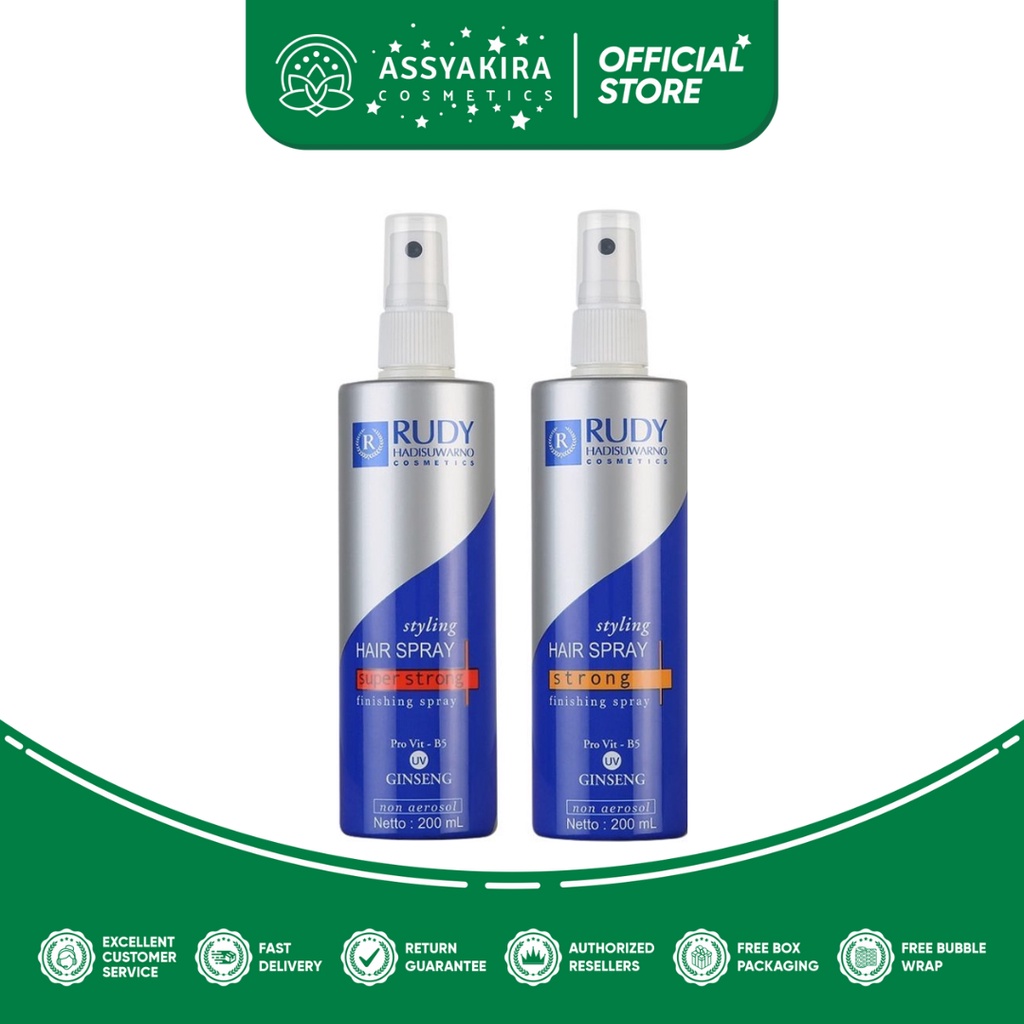 Rudy Hadisuwarno Styling Hair Spray 200ml "Ekstrak ginseng membantu merawat kekuatan rambut anda, menjadikannya mudah ditata dan tampak indah selalu" - Hairspray untuk sentuhan akhir yang diformulasikan untuk menghasilkan daya set tinggi dan tidak lengket -Mengandung ekstrak ginseng, pro vitamin B-5 dan UV filter yang membantu melindungi dan merawat rambut agar terlihat sehat dan berkilau