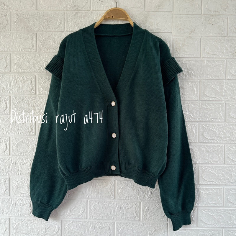 Detail RUFFELL CARDIGAN RAJUT KANCING POLOS ATASAN LENGAN PANJANG WANITA