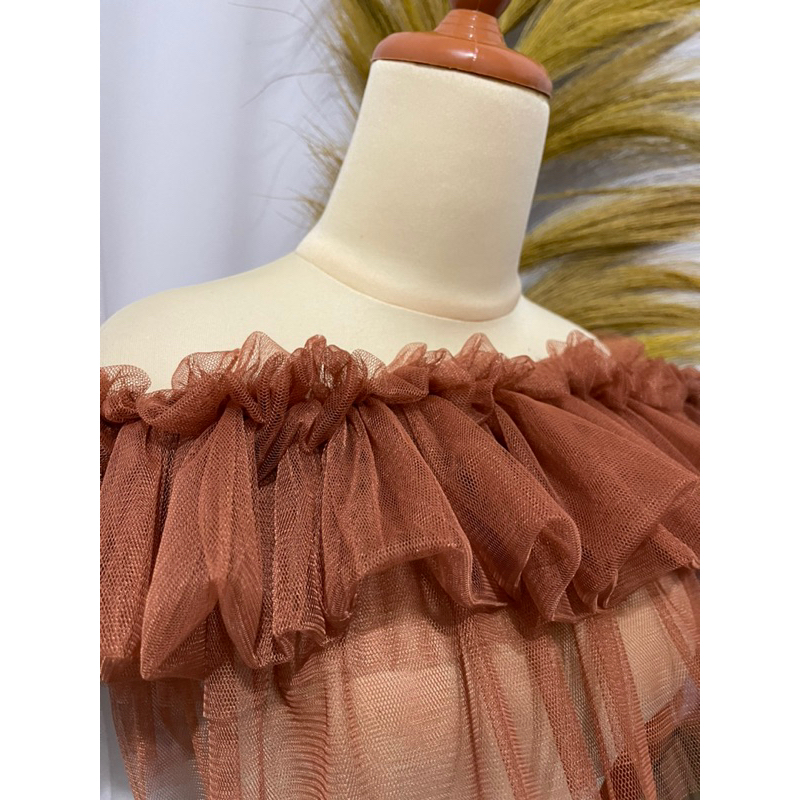 Detail Ruffle Sabrina tulle makeup / properti beauty Vloger photoshoot