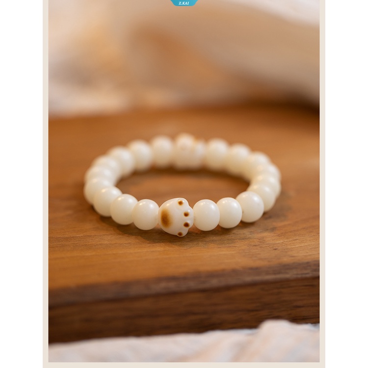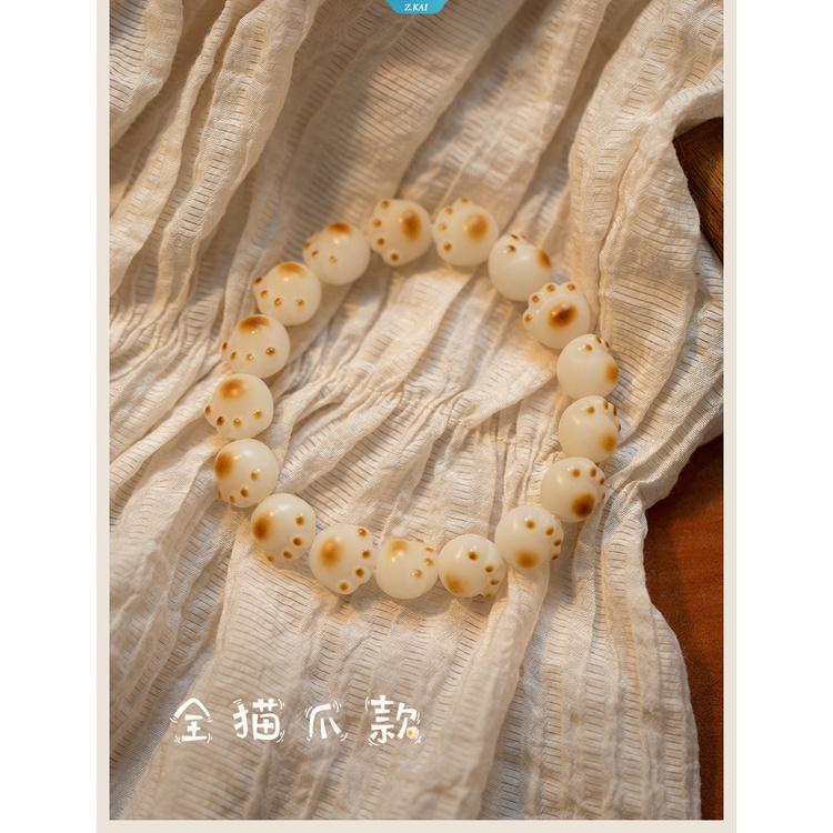 Ruifan Cat Paw Rumbai Putih Arang Membakar Buddha Manik-manik Gelang Akar Bodhi Alami untuk Wanita Fashion Perhiasan Gelang Pacar Gelang Hari Valentine Gadis Hadiah [ZK]