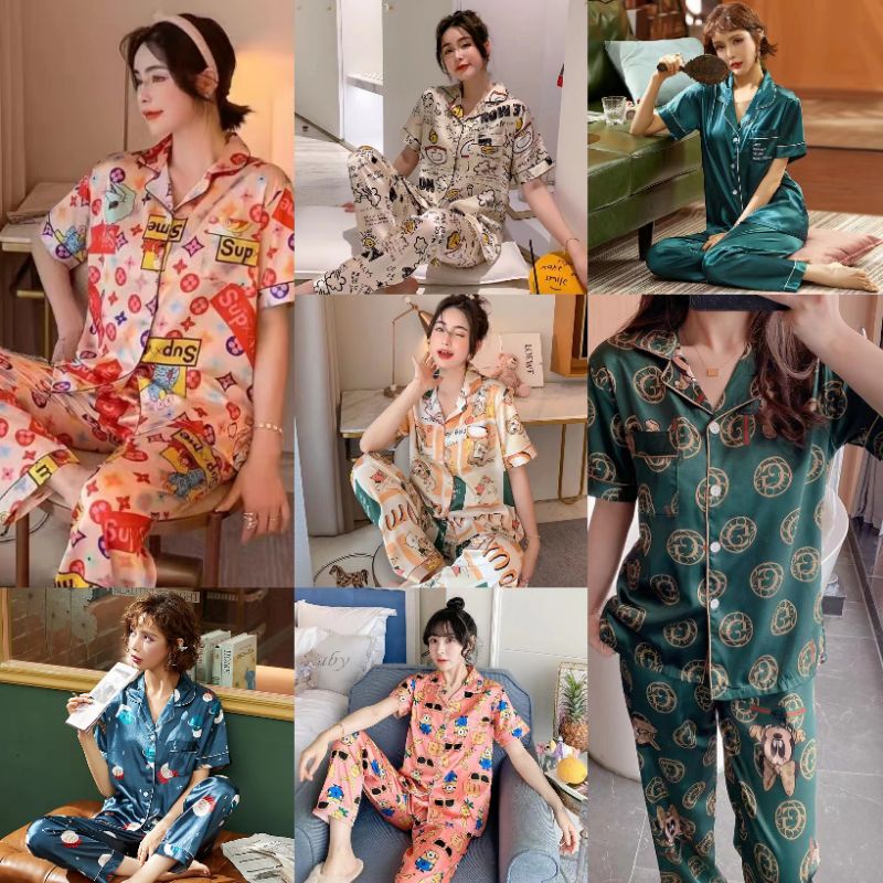 Pakaian Wanita > Pakaian Tidur & Piyama > Piyama > RULIF Piyama baju tidur wanita satin import pemium | Set piyama saten lengan pendek | Set kemeja satin import