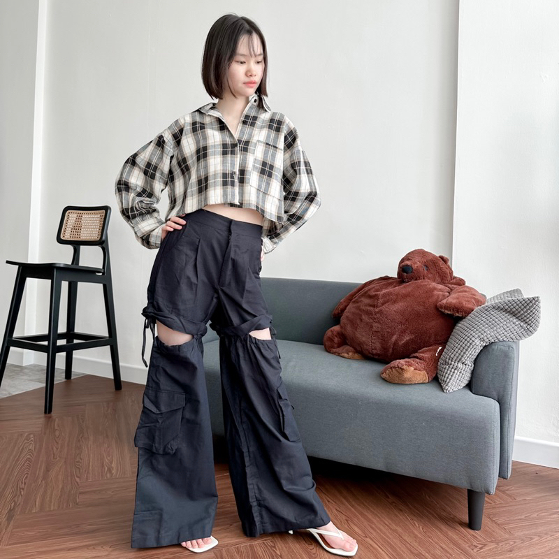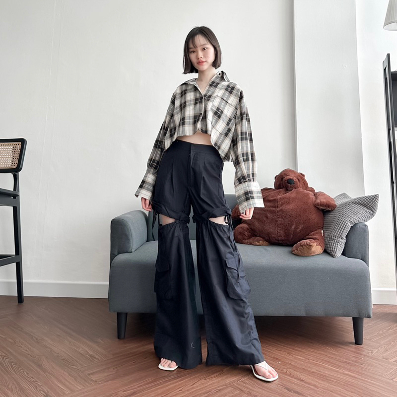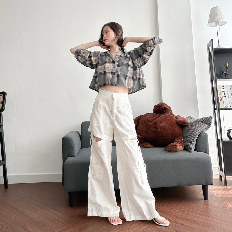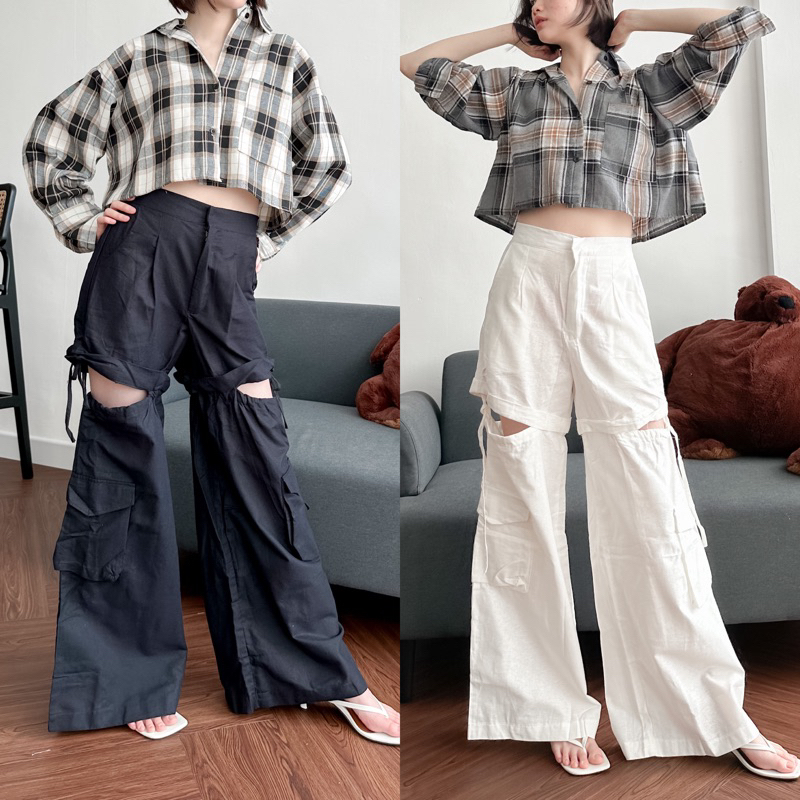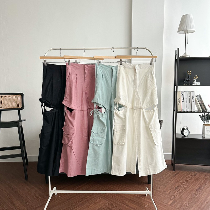 Material : cotton rami. Menggunakan zipper hook dan ada karet elastis di bagian belakang. Terdapat cutt off dibagian paha