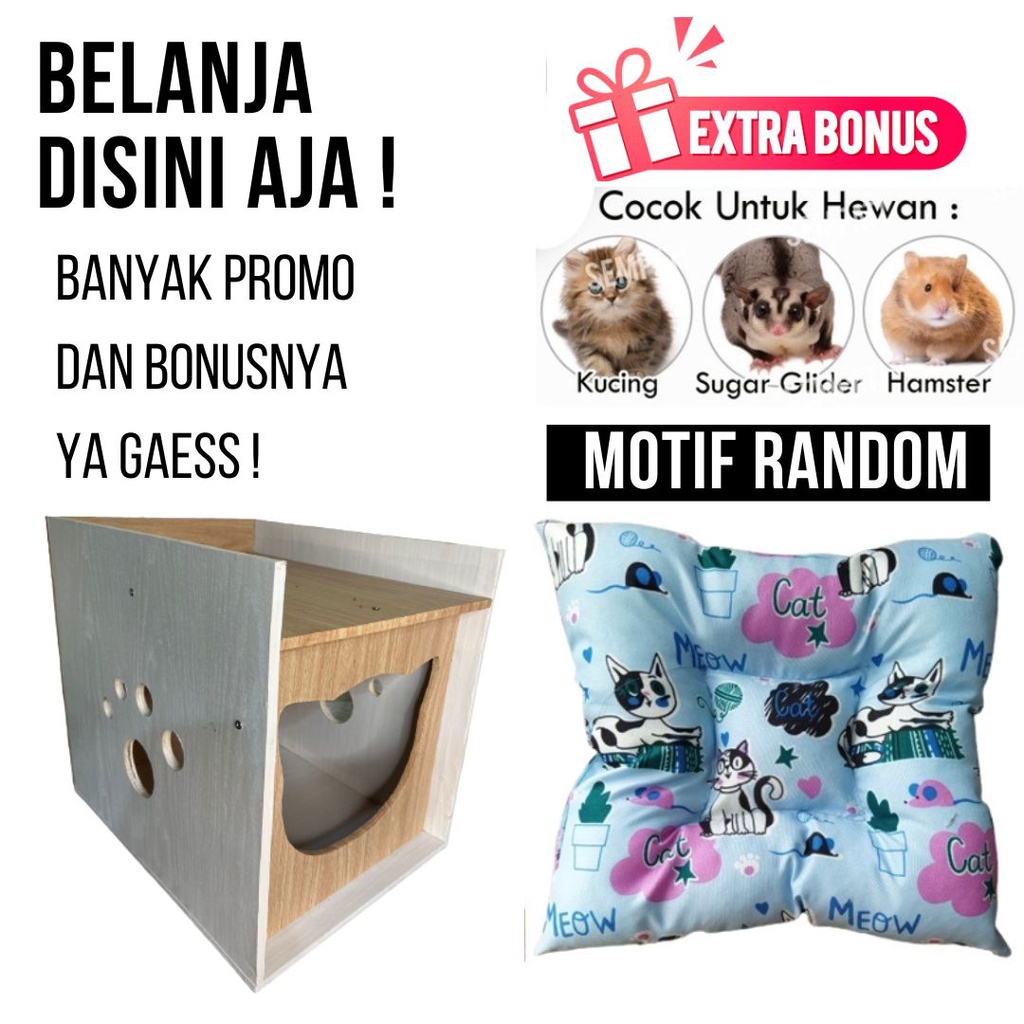 rumah / kandang kucing kayu lebih ramah lingkungan, mudah di rakit dan di bersihkan, ukuran yang cukup luas memberikan ruangan yang lebih leluasa untuk kitten kesayangan dan tidak pengap.