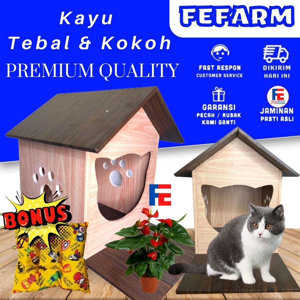Detail Rumah Kucing PREMIUM Cat House Kayu Hewan Peliharaan BESAR FEFARM