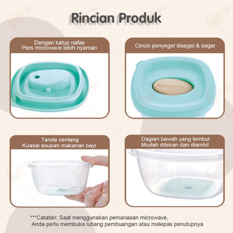 🦘Warna : Tosca dan Pink 🦘Bahan: 🌳penutup, wadah dan katup dari PP 🌳karet segel dan karet bagian bawah dari TPE 🦘Kapasitas : 120ml 🦘Berat : 210g 🦘Ukuran produk:9*9*5cm 🦘Ukuran Paket : 22 * 16 * 10cm 🦘Produk : Container 🦘Fitur 🌳Material plastik PP5 (polypropylene), tahan suhu -20°C sampai 120°C 🌳Wadah Mpasi Bayi dibuat menggunakan plastik PP berkualitas dan BPA Free. 🌳Wadah dilengkapi dengan seal untuk menghindari kebocoran maupun tumpah 🌳Dapat digunakan secara berulang kali 🌳Air vent untuk penggunaan microwave 🌳Microwave safe dan Freezer Safe