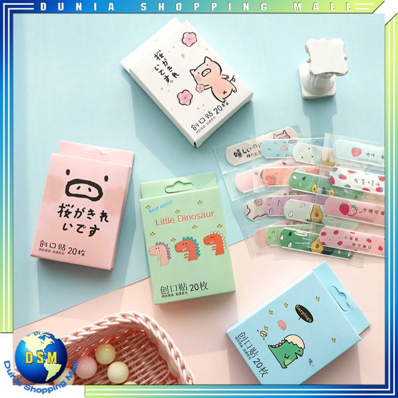 1 Box isi 20pcs Bahan : PE Ukuran kotak : 9.5*7.5*2Cm Ukuran plaster : 7 cm x 2 cm