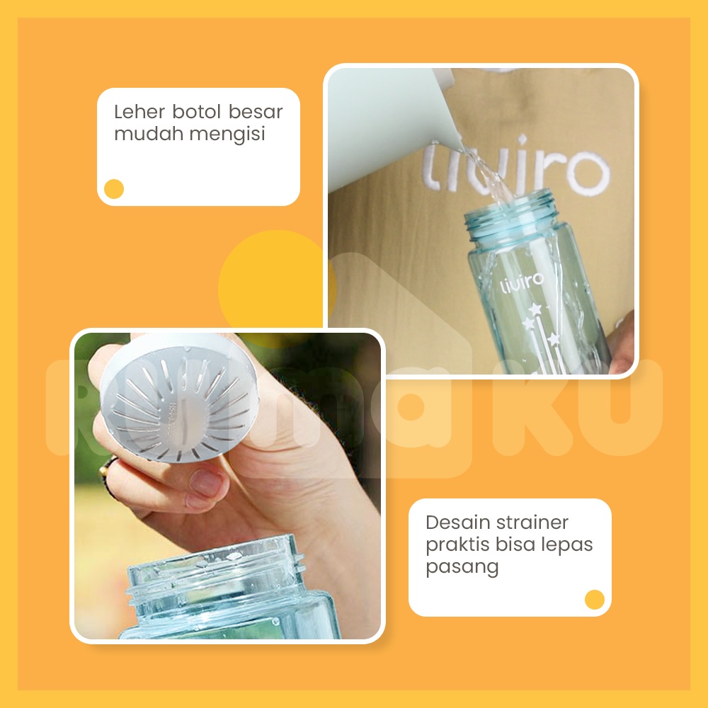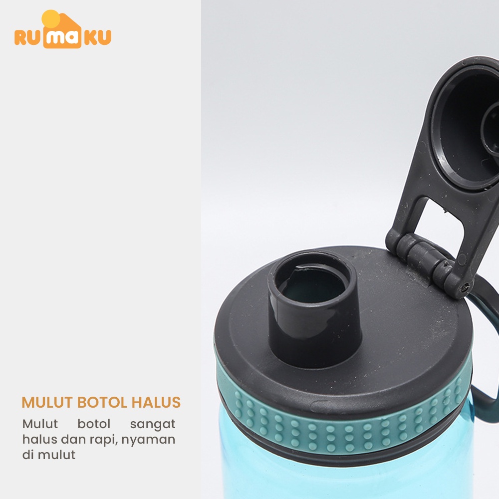 Gak cuma itu aja, masih ada lho beberapa keunggulan yang ada pada botol minum Rumaku ini: 1.) Botol minum berbahan plastik kuat pilihan dan sudah terjamin kokoh 2.) Seal botol double silicon model spiral berulir membuat kamu terjamin air tidak akan tumpah secara mudah karena ketat dan kedap anti rembes/bocor. 3.) Cap strap dengan desain gagah, meyakinkan bahwa ring strap ini bisa dipakai untuk tali strap apa saja dan bisa dibawa kemana pun disegala kondisi 4.) Built in Handle (cap strap) pada tutup botol yang multifungsi, yang bisa berguna untuk menjadi holder serta bisa digunakan untuk menggantung tali strap. 5.) Terdapat saringan (strainer) pada leher botol yang bisa dilepas-pasang, berfungsi untuk infuse pada teh