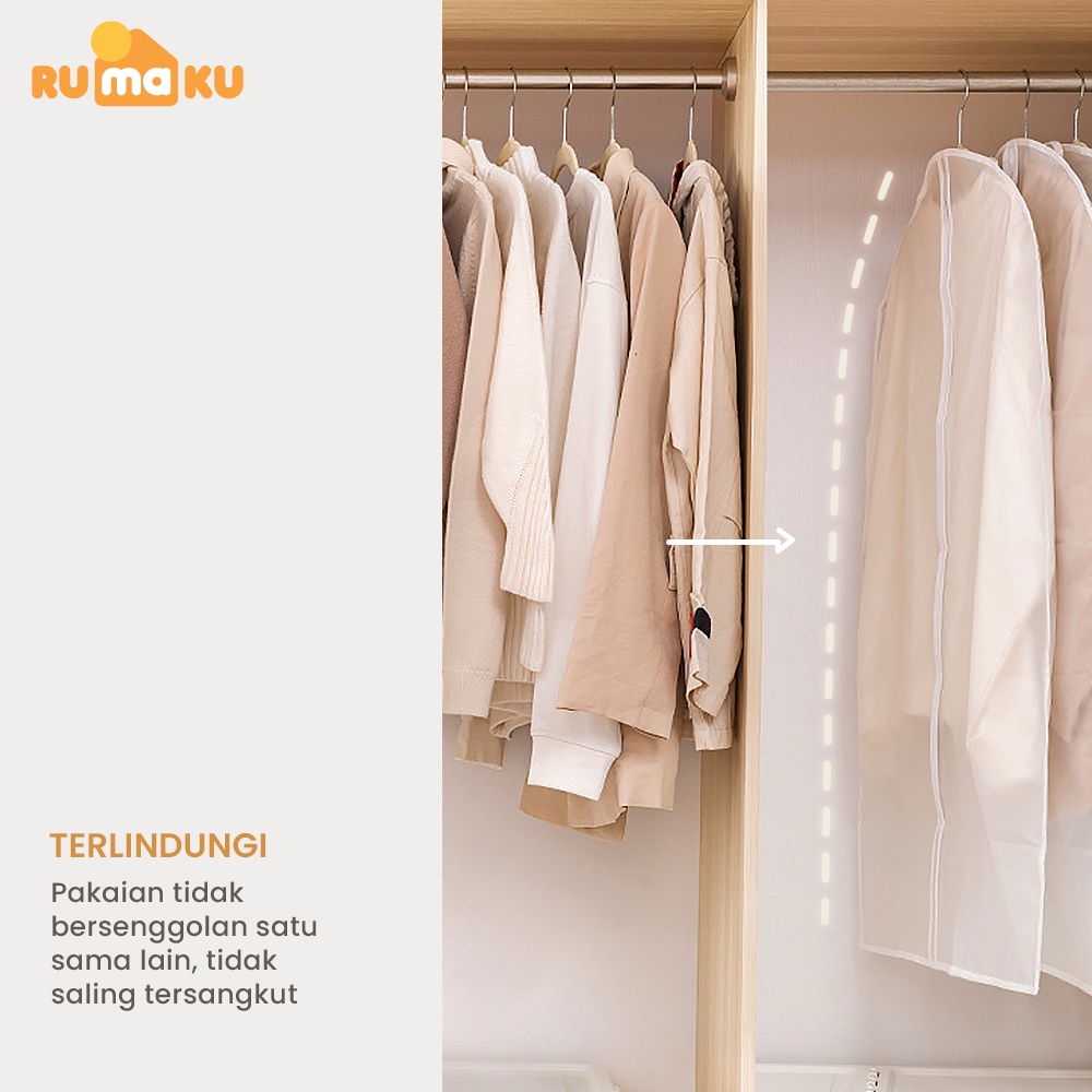 Perlengkapan Rumah > Organizer Rumah > Organizer Lemari Pakaian > Rumaku Cover Baju Resleting Anti Debu Anti Air Cover Pakaian Jas Gaun Gantungan Cover Baju PEVA