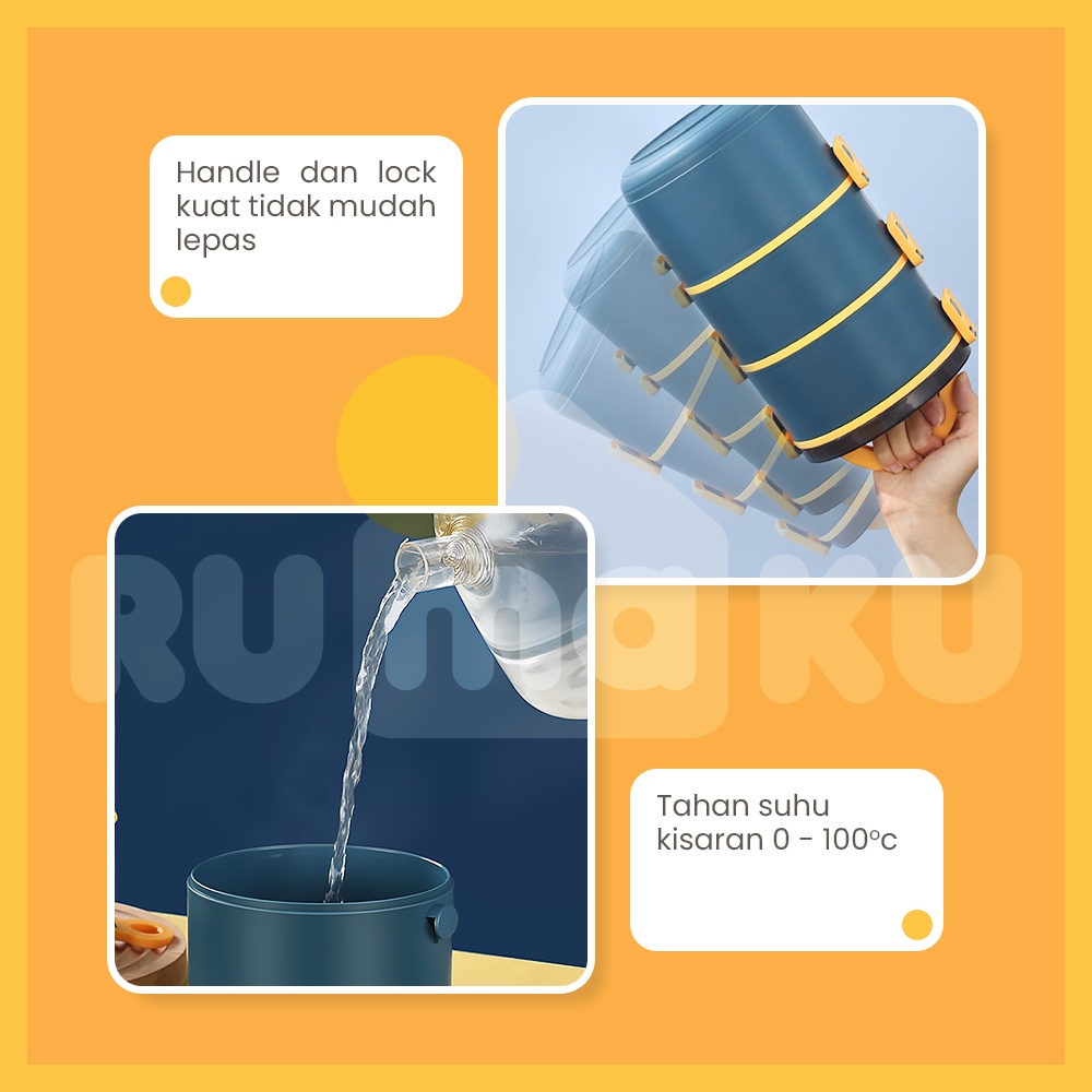 Perlengkapan Rumah > Peralatan Dapur > Tempat Penyimpanan Makanan > Rumaku Kotak Makan Tempat Makan Bekal Lunchbox Rantang Bulat 3 Tingkat 2200 ml Anti Bocor Free Sendok BPA FREE