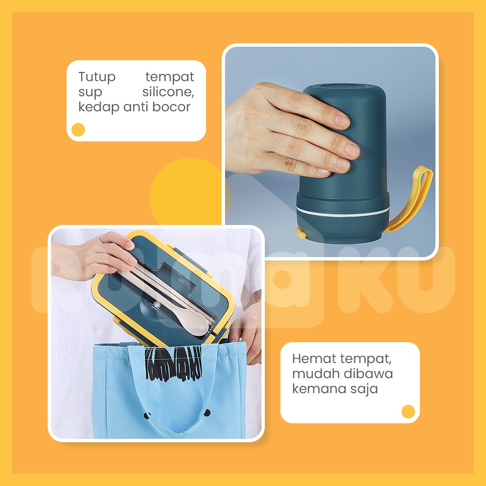 Detail Rumaku Lunchbox set Jerami Kotak Makan Bekal Tempat Makan dan Mangkuk Sup 1000ml/330ml Free Sendok BPA FREE