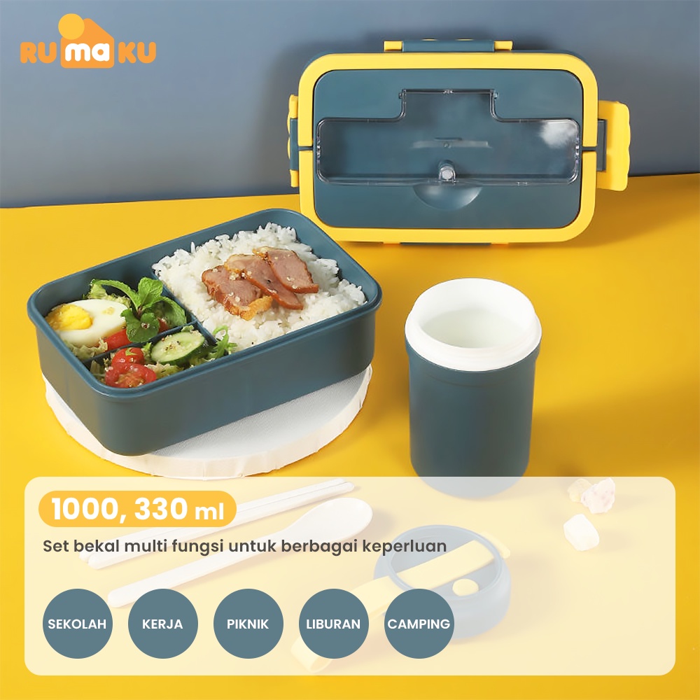 Rumaku Lunchbox set Jerami Kotak Makan Bekal Tempat Makan dan Mangkuk Sup 1000ml/330ml Free Sendok BPA FREE