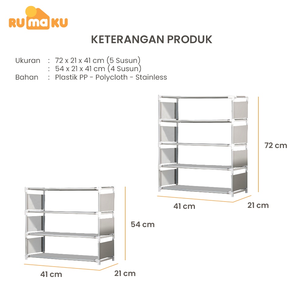 Rumaku Rak Sepatu Portable Serbaguna 4 Susun dan 5 Susun Tempat Sepatu Sandal Multifungsi