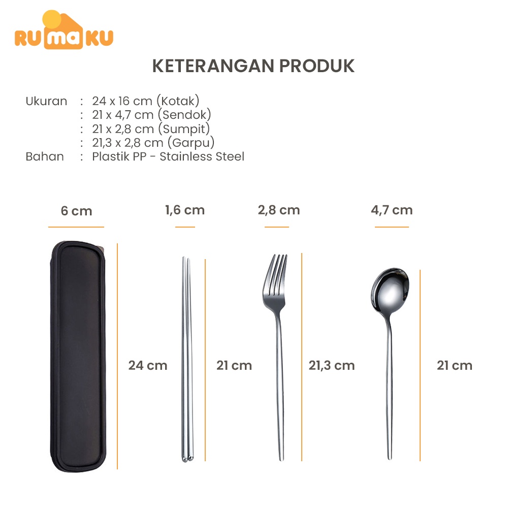 Perlengkapan Rumah > Peralatan Makan > Alat Makan > Rumaku Sendok Set Alat Makan 3 pcs Bahan Stainless Steel 304 Tebal Sendok Garpu Sumpit Set dengan Kotak