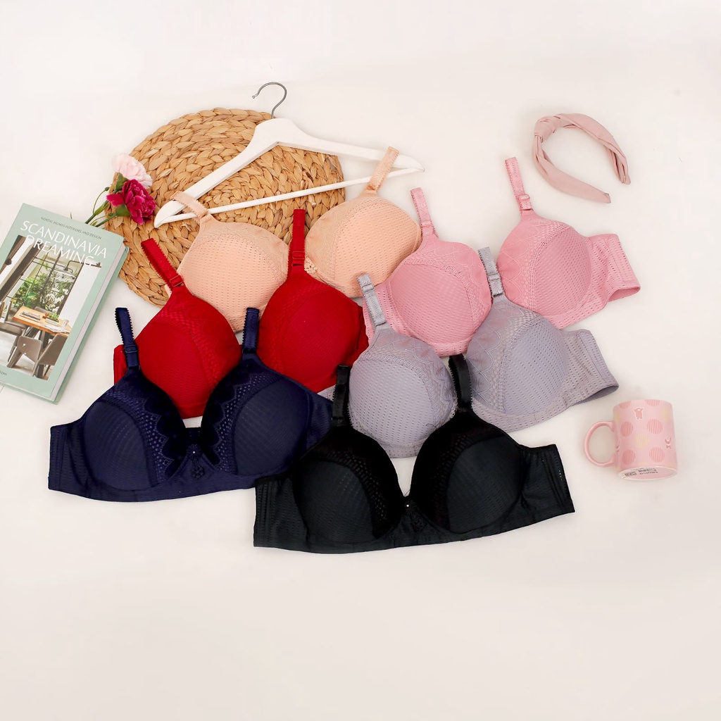 Ukuran :40/90, 42/95, 44/100, 46/105 Cup : C Warna :Hitam, Merah, Abu-abu, Cream, Navy, Rose Bahan : Polyester Model Busa: Busa Standar Jumlah Kait : 3