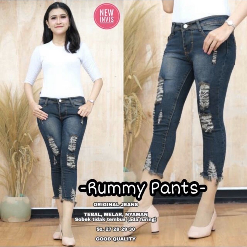 Pakaian Wanita > Denim > Celana Panjang Jeans > Rummy pants | celana jeans 7/9 sobek tidak tembus | PDK 7/9