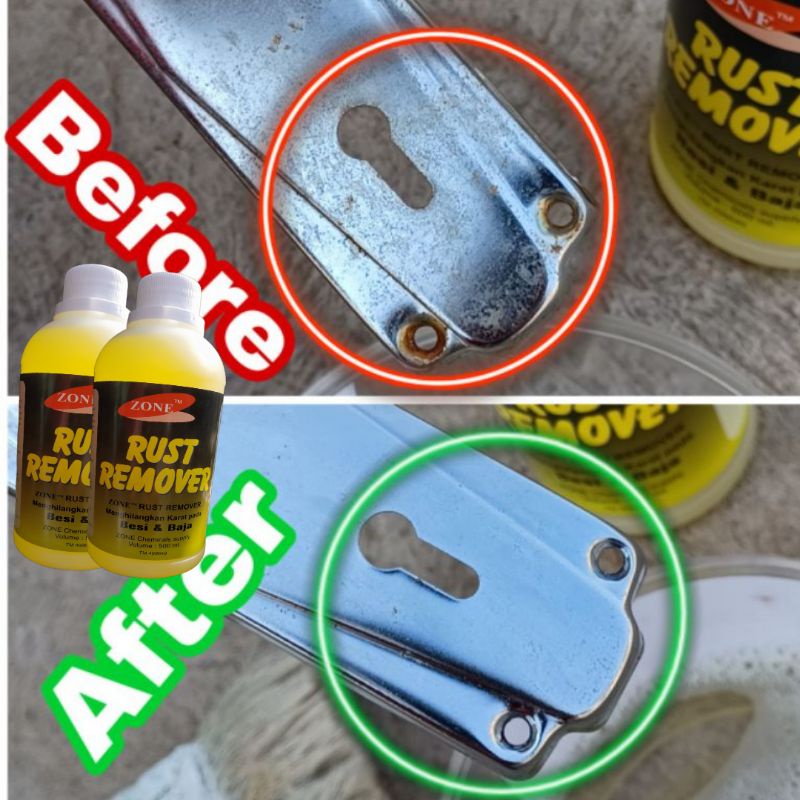 RUST Remover ZONE merupakan Cairan Extra-Ampuh menghilangkan Kerak-Noda-Karat 10x lebih ampuh dibandingkan merk lainnya.