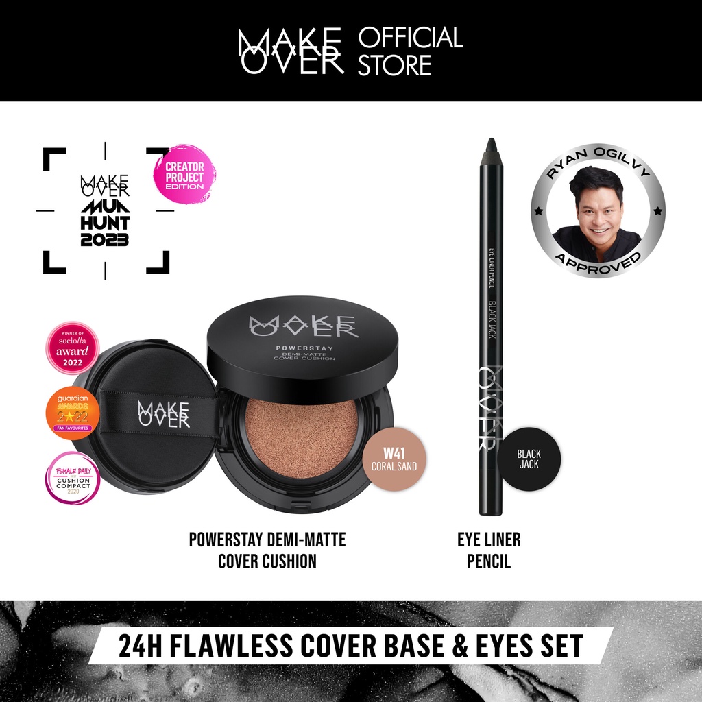 Detail [RYAN OGILVY APPROVED] 24H Flawless Cover Base & Eyes Set : Powerstay Demi Matte Cushion & Eye Liner Pencil