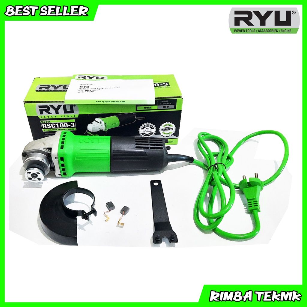 RYU Gurinda tangan Gerinda Toggle 4" RSG100-3 / Angle grinder 4" RSG100-3 Garansi Servis Seumur Hidup. Garansi Resmi 6 Bulan Spare Part.