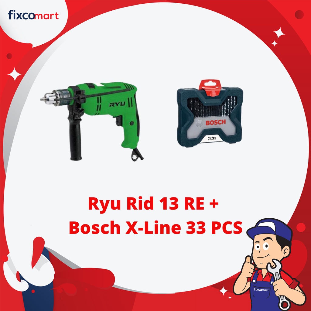 RYU Mesin Bor Tangan Ryu Rid 13 + Bosch X-Line Mata Bor Dan Obeng Variasi
