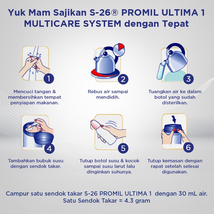 S-26 Promil Ultima Multicare System Tahap 1 adalah susu formula untuk bayi usia 0-6 bulan. Diproduksi oleh Wyeth Nutritionals (Singapore) Pte., Ltd. Formula bayi hanya digunakan atas anjuran Dokter atau Tenaga Kesehatan lainnya berdasarkan indikasi medis dan disertai penjelasan cara penggunaan yang benar.