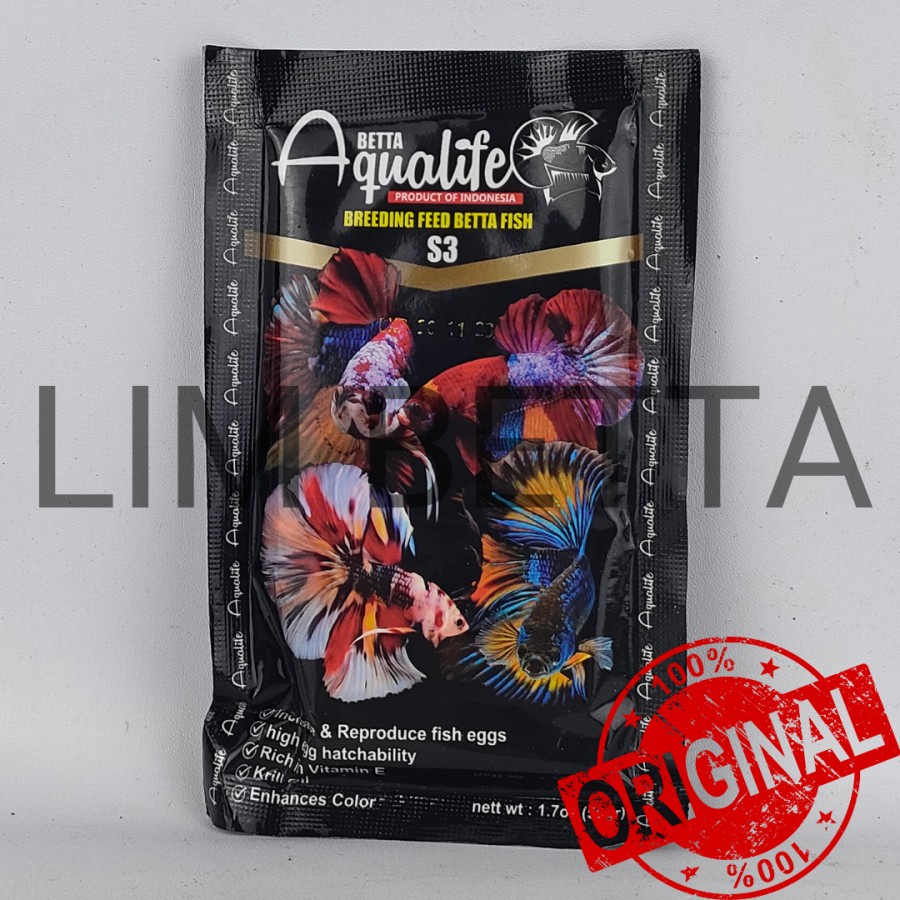 Aqualife Betta S3 dengan kandungan Tinggi Vitamin E, dikhusukan untuk indukan, menjaga pematangan telur pada ikan indukan, memperbanyak serta meningkatkan kualitas tetas.