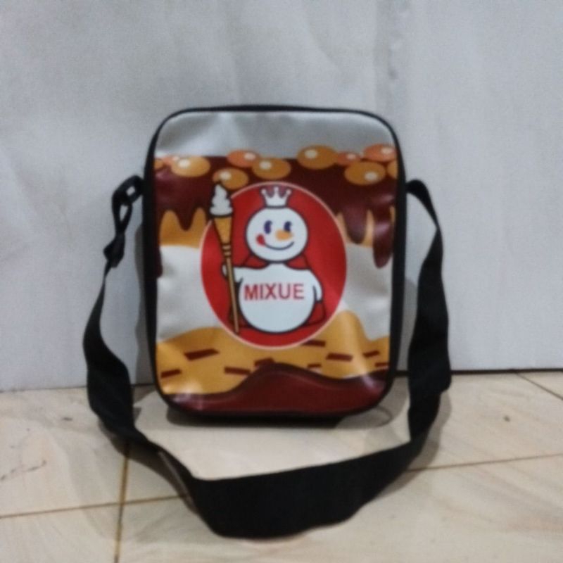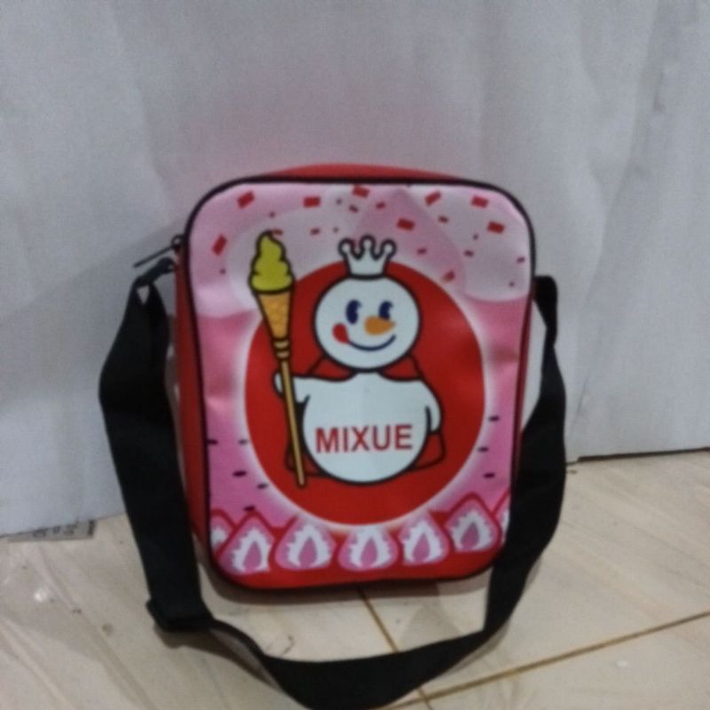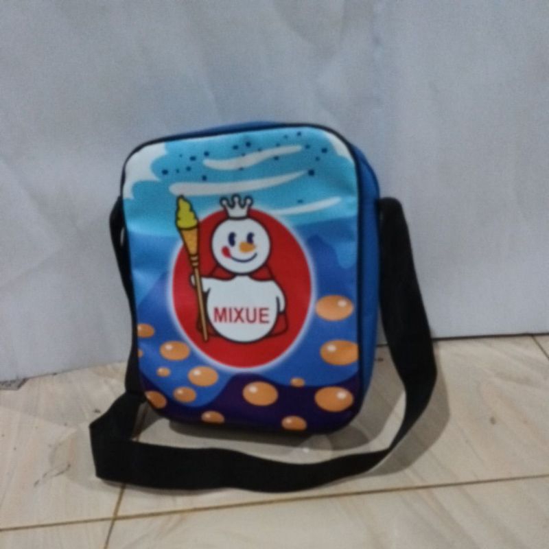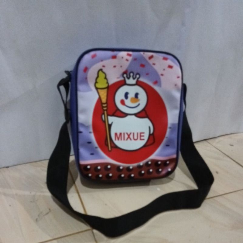 tas slempang MIXUE terdapat 1 ruang utama ,tali panjang bisa disesuaikan ,gambar printing