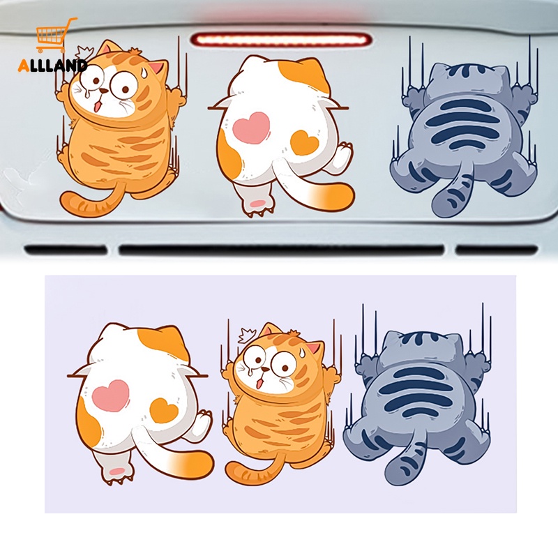 Detail S/m/l 3ukuran Kartun Kucing Bentuk PVC Perekat Diri Stiker Mobil/Menarik Pet Kitten Mendaki Aplikasi Otomotif/DIY Kendaraan Pribadi Decal