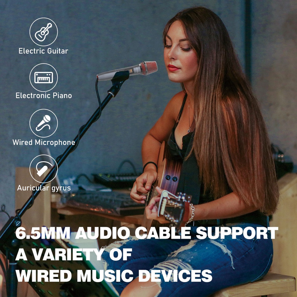 •Multi play Mode Support pemutaran lagu via Bluetooth 5.0, Micro SD,Flashdisk ,Aux 3.5m bahkan terdapat Port 1/4inch untuk GITAR LISTRIK dan Mic kabel.