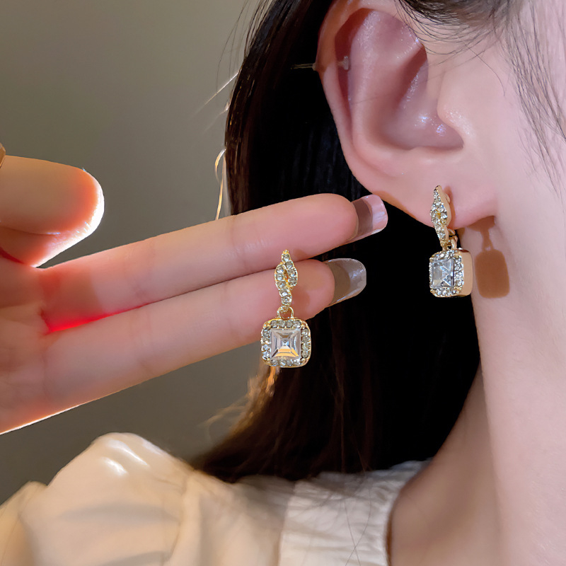 Detail S925 Anting Berlian Persegi Geometris Retro, Versi Korea Modis Acara Penting Untuk Aksesoris Perhiasan Wanita
