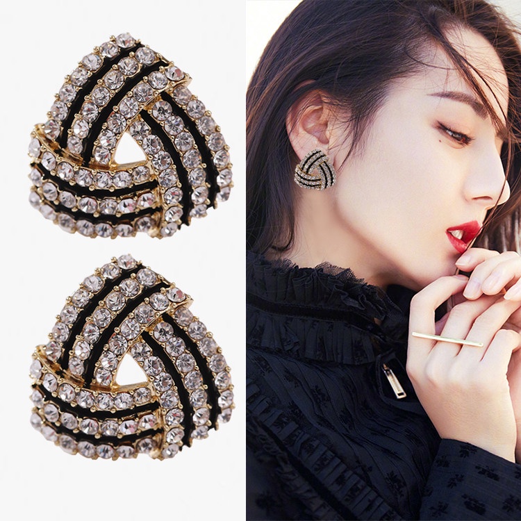 Aksesoris Fashion > Anting > S925 Jarum Perak Gaya Baru Korea Segitiga Berlian Anting Temperamen Hitam Gaya Keren Anting-Anting Geometris Anting-Anting Wanita