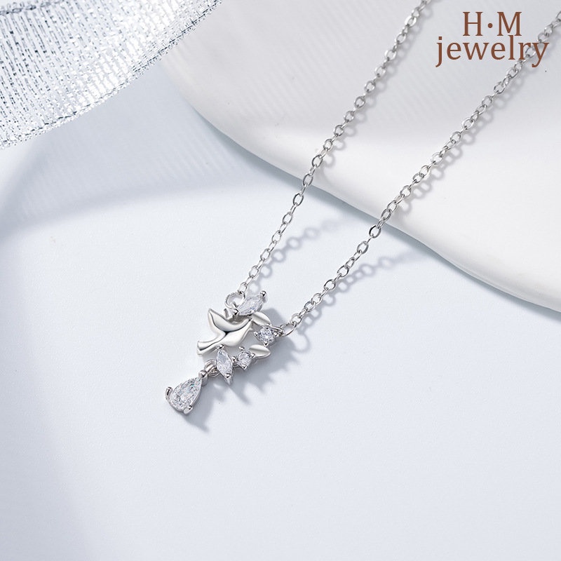Detail S925 Perak Baru Beruntung Gandum Kalung Cahaya Mewah Rasa Tinggi Glitter Ornamen