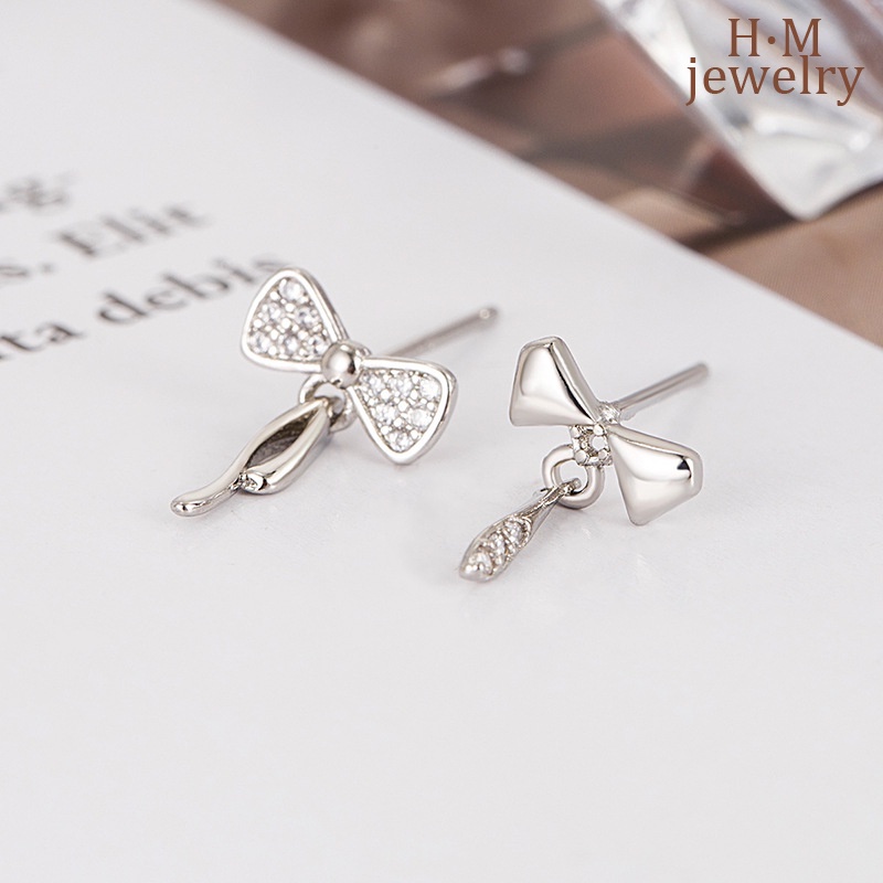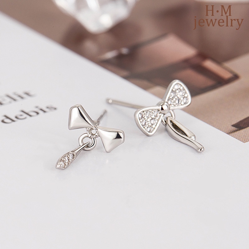 Detail S925 Perak Busur Asimetris Pejantan Anting Baru Lucu Anting