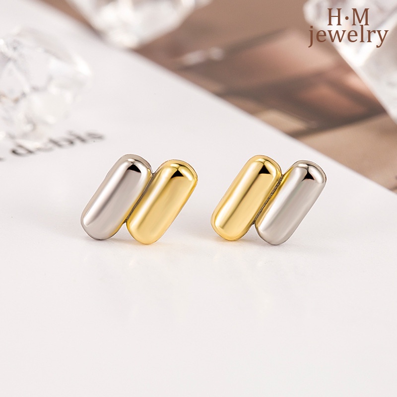 Detail S925 Perak Duawarna Bean Stud Earrings Cahaya Mewah Sederhana Bermutu Tinggi Warna Yang Sesuai Dengan Anting-Anting
