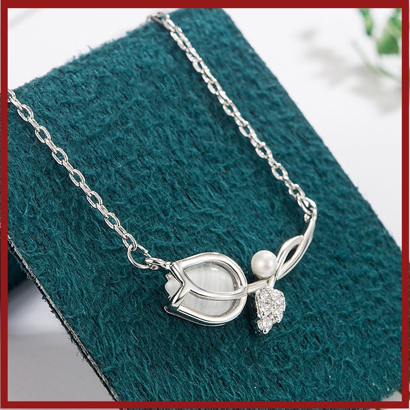 Detail S925 Perak Flash Berlian Imitasi Mutiara Opal Tulip Kalung2023Baru Cahaya Mewah Rasa Tinggi Kalung U1600