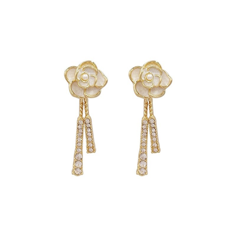 💛 Nama: S925 Jarum Perak Camellia Bor Penuh Rumbai Anting Panjang